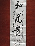 [藏品简介] 名称:墨宝“和为贵”。作者:冯兰中。尺寸:长150cm*宽50cm。年代:2025年。注:冯兰中,1947年生于山东临朐县,系明代著名散曲家冯惟敏后裔,其家族在明清时期以科举兴盛和文学传承闻名。曾服役于陆军第38军113师坦克团,后履职于解放军报社,转业后长期在临朐县从事新闻宣传、摄影创作、文秘实务及法律服务等工作,摄影和书法作品在文化领域具有较高影响力,被誉为“临朐摄影第一人”。